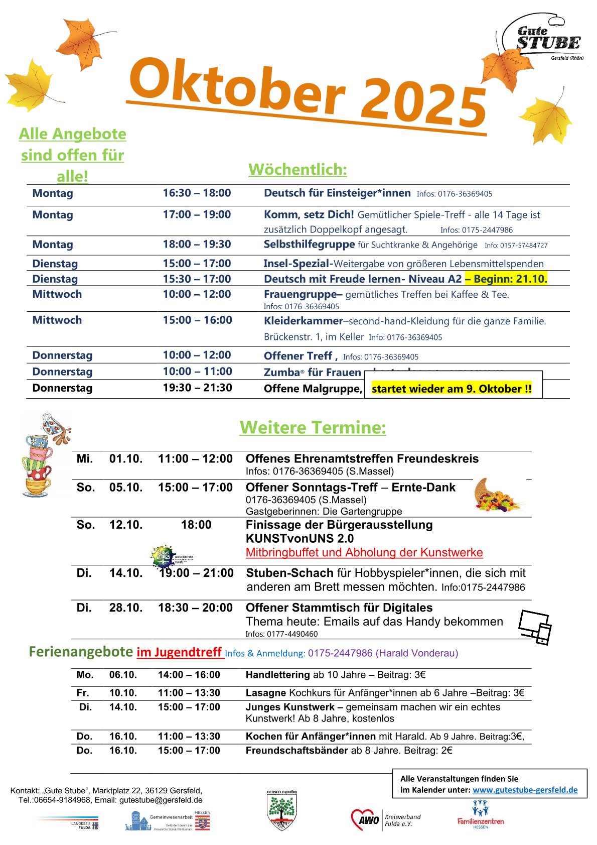 Offener Treff Donnerstag, 16.10.2025 10:00 — 12:00