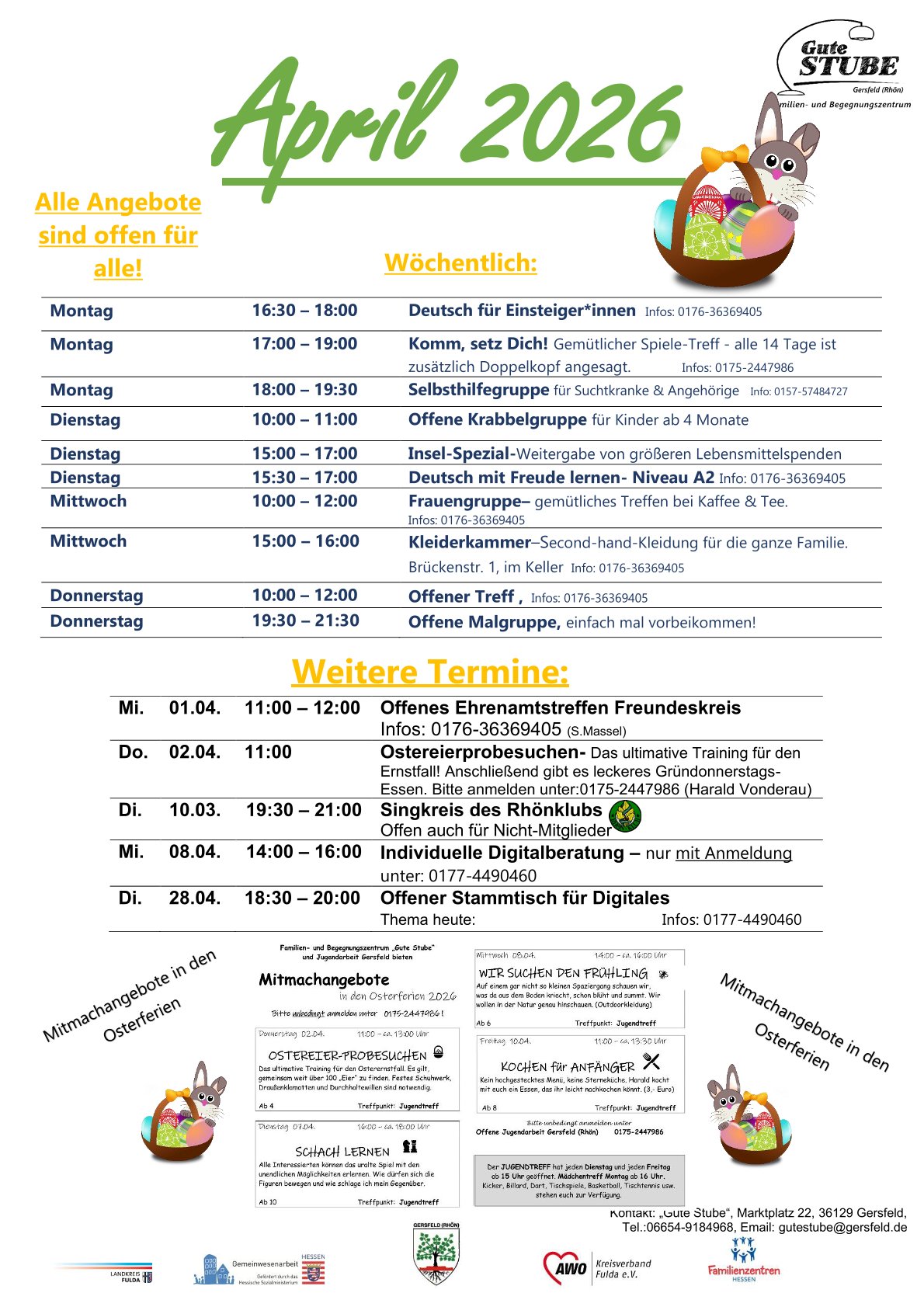 Offener Treff Donnerstag, 02.04.2026 10:00 — 12:00